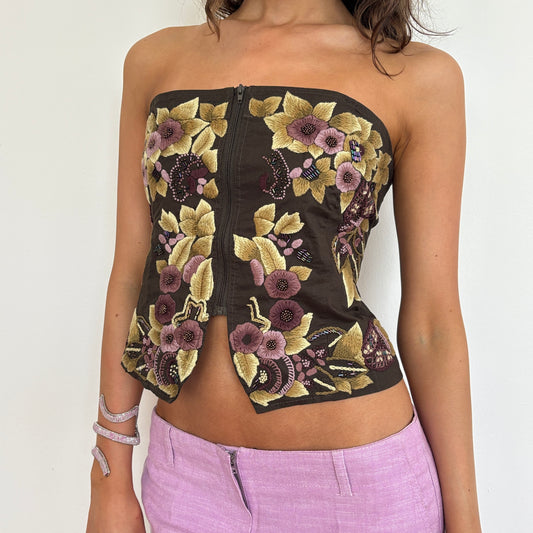 Strapless floral beaded top - M