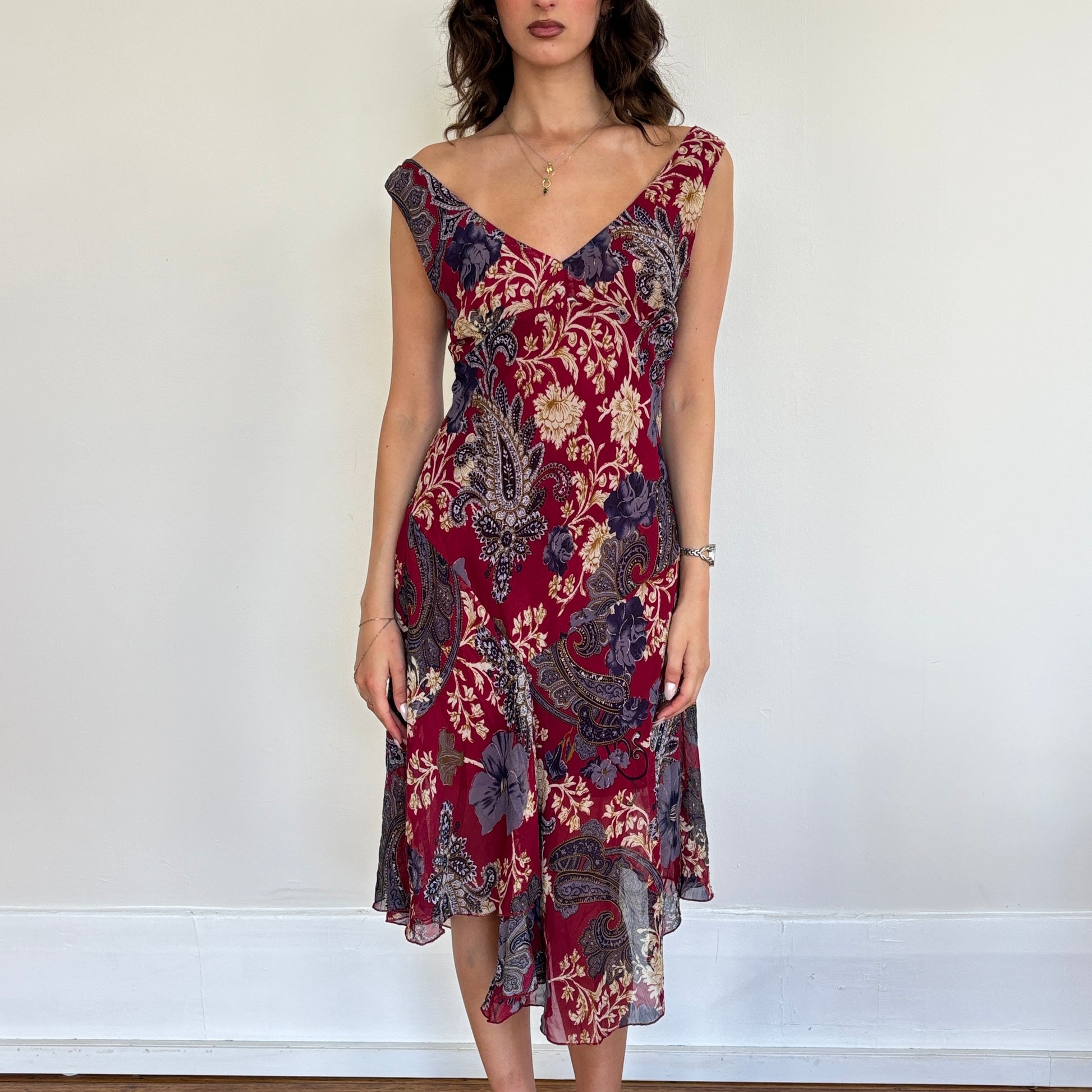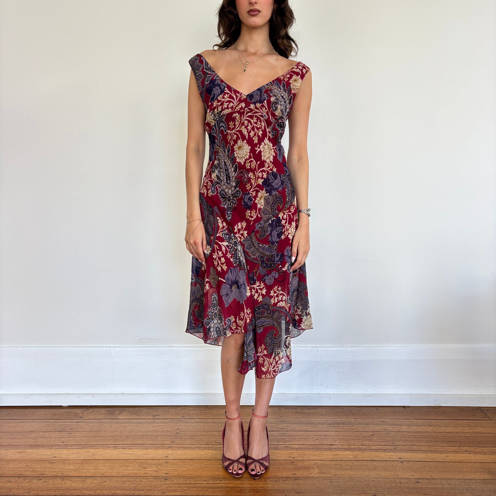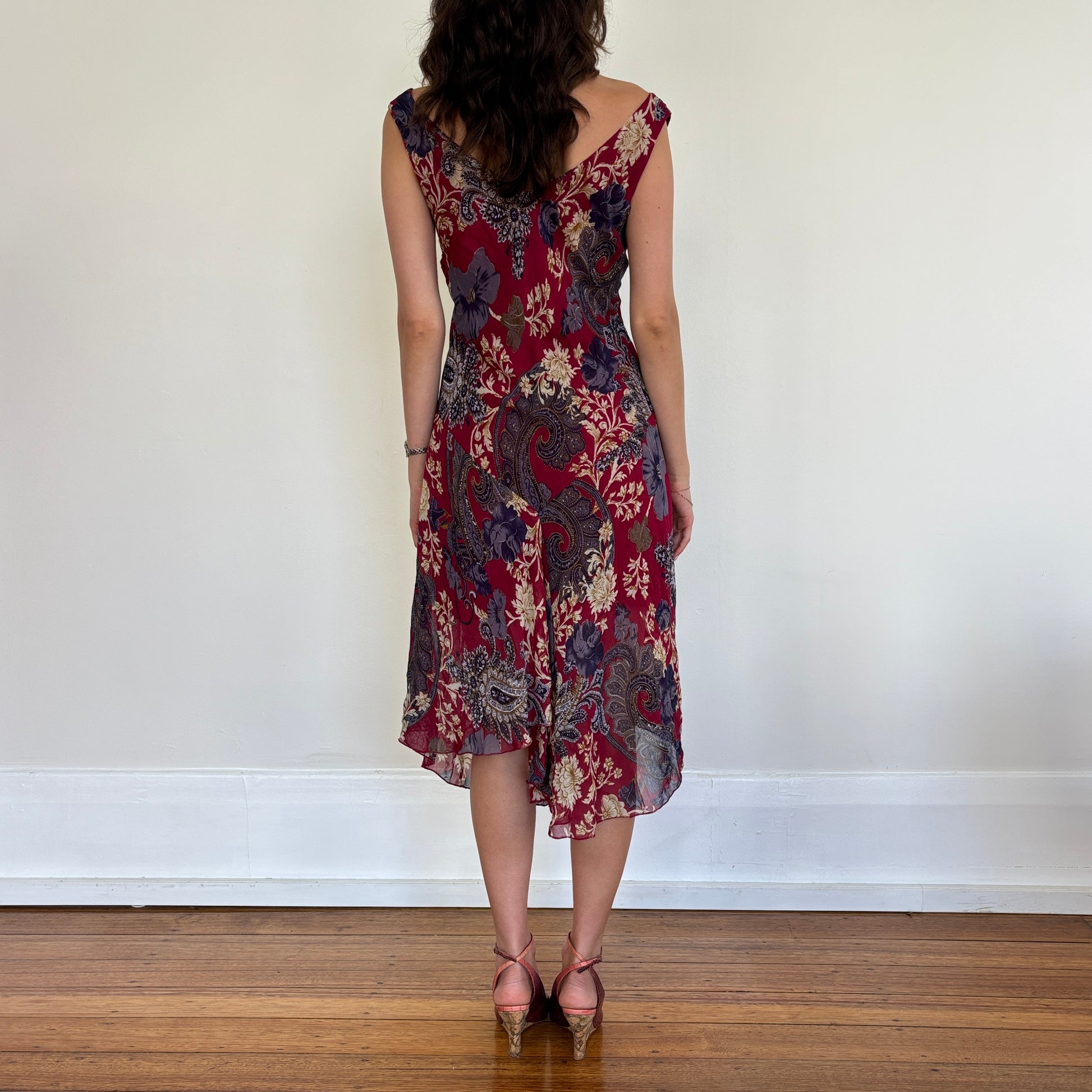 Beautiful sparkly floral print flowy midi dress. Modelled on a 6/8 pinned back, 174 cm. Sourced from Italy.