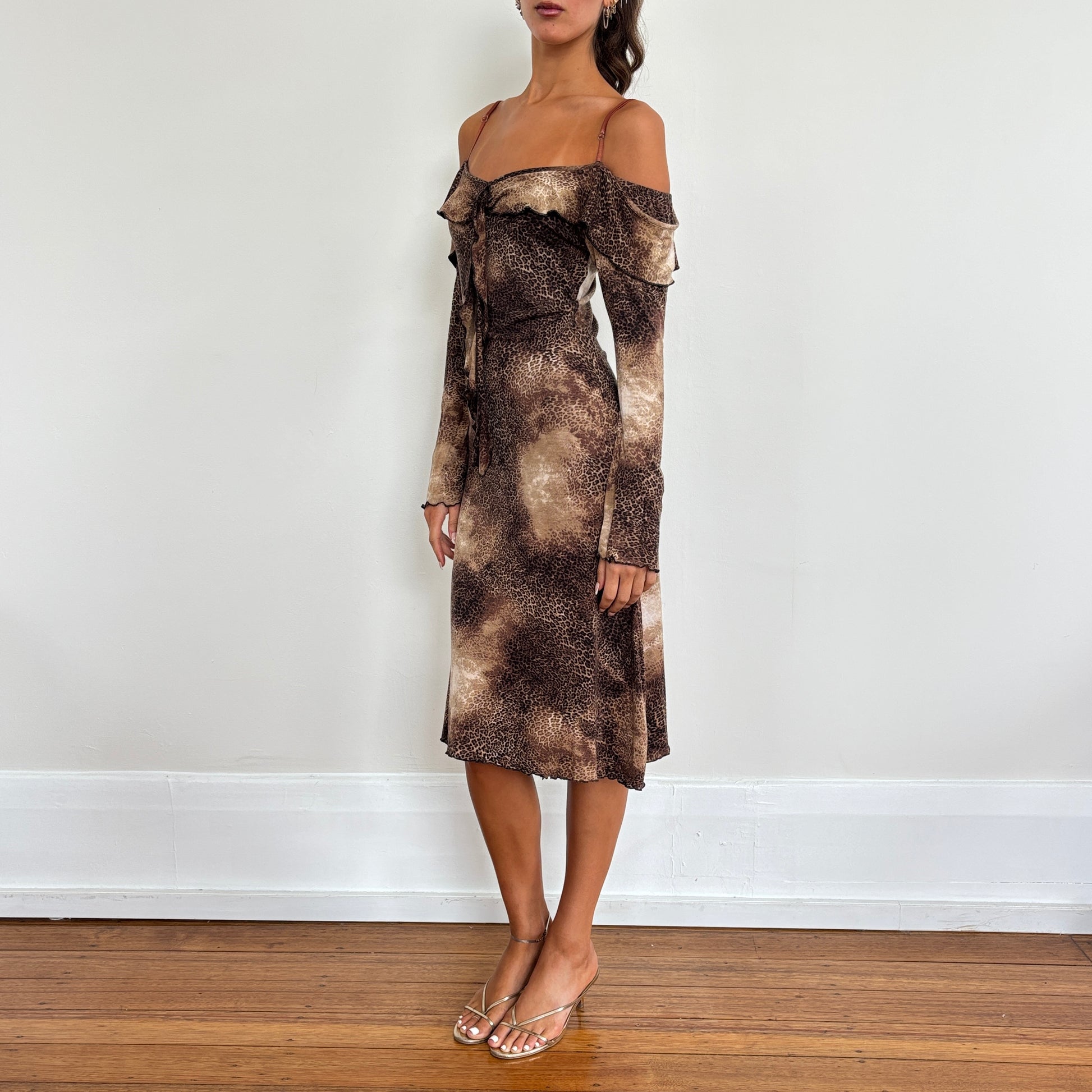 Italian leopard off shoulder dress, brand is Coconuda. Very stretchy. Best fit an s - m.
